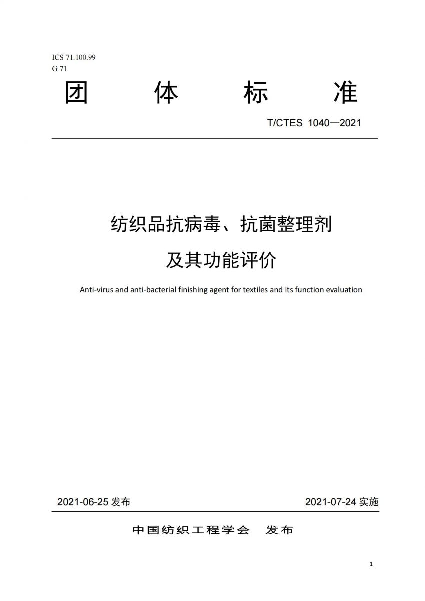 《T/CTES 1040-2021 纺织品抗病毒、抗菌整理剂及其功能评价》;