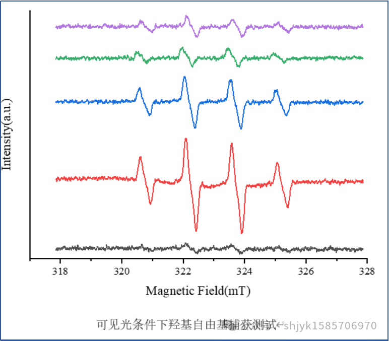 本项目研发的产品具有可见光下的明显光触媒效应(超氧自由基和羟基自由基):