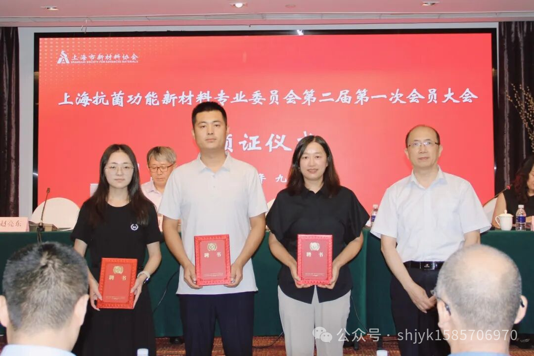会上,协会秘书长何扣宝为新当选的专委会主任单位--上海洁宜康化工科技有限公司颁发证书,为专委会秘书长赵亮东、副秘书长王俊丽和于文秀颁发聘书。专委会新任主任马正升代表第二届专委会表态,专委会将秉承“敢为人先、守正创新”的精神,将专委会建设成推动抗菌功能新材料高质量发展的引擎,并提出了“将充分发挥专委会的纽带作用和影响力,积极配合协会做好政府部门与企业之间的桥梁工作、推动产品标准化建设、构建和打通“材料研发-商业化落地-规模化生产-应用端反馈-再研发”的产业闭环、推动企业优质科研项目落地和转化”等工作设想。